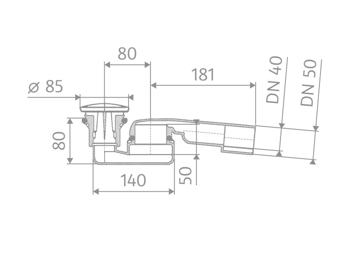 - Ø 52 mm - Ablaufgarnitur waagerecht, gemäß DIN EN 274