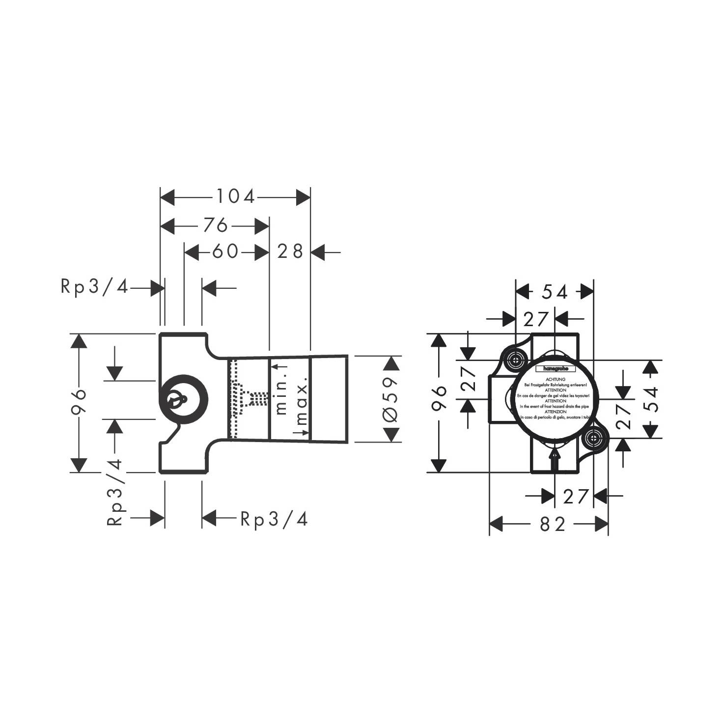 Haben Sie noch Fragen? Wir stehen Ihnen telefonisch unter +49 (0) 4621 - 30 60 89 0 zur Verfügung.Hansgrohe Grundkörper für Trio Ab-/ Umstellventil Unterputz