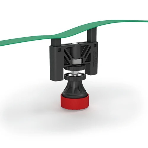 Ausgleich von Unebenheiten durch federgelagerte und klebefixierte Stife.