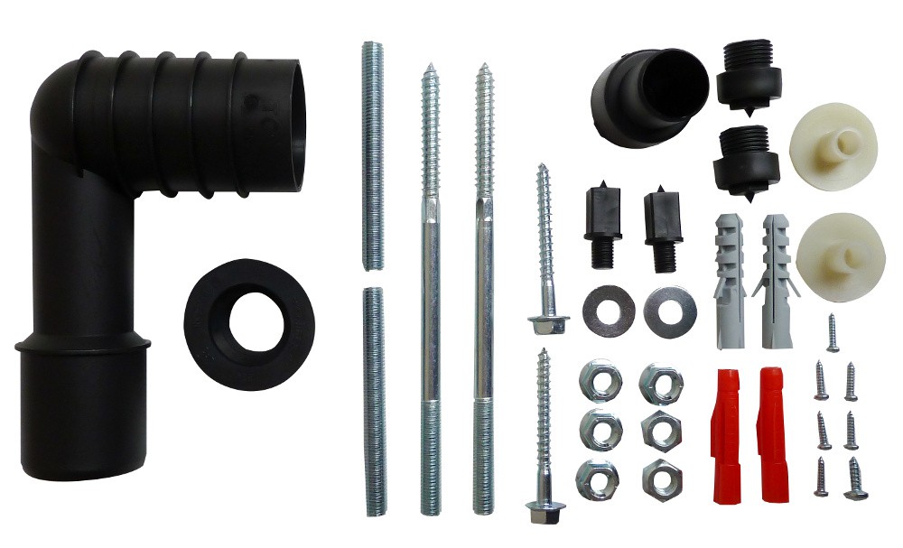 - Wandbefestigung bestehend aus 2 Stockschrauben, 2 Dübel, 4 Flanschmuttern
