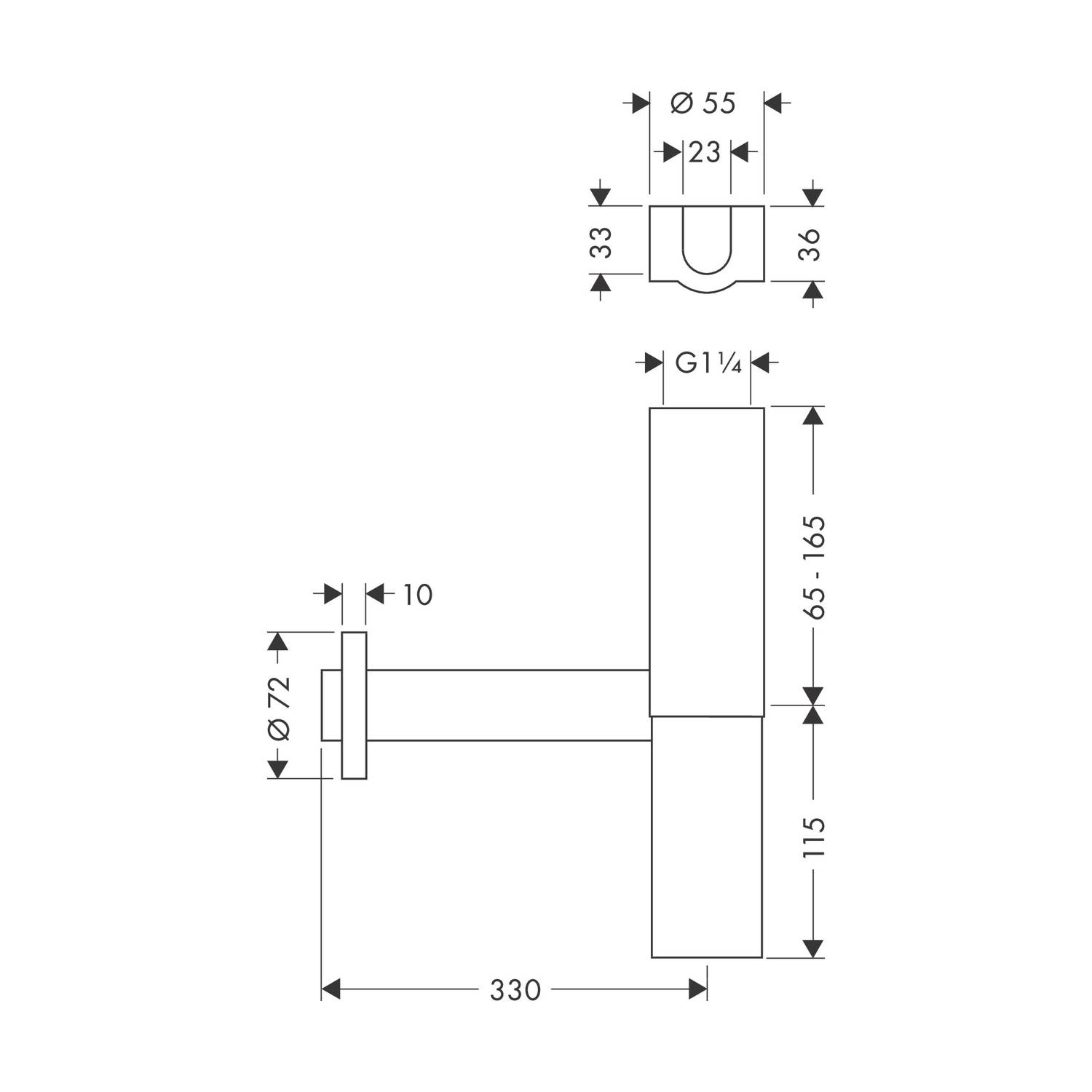 - Wandabstand 330 mm