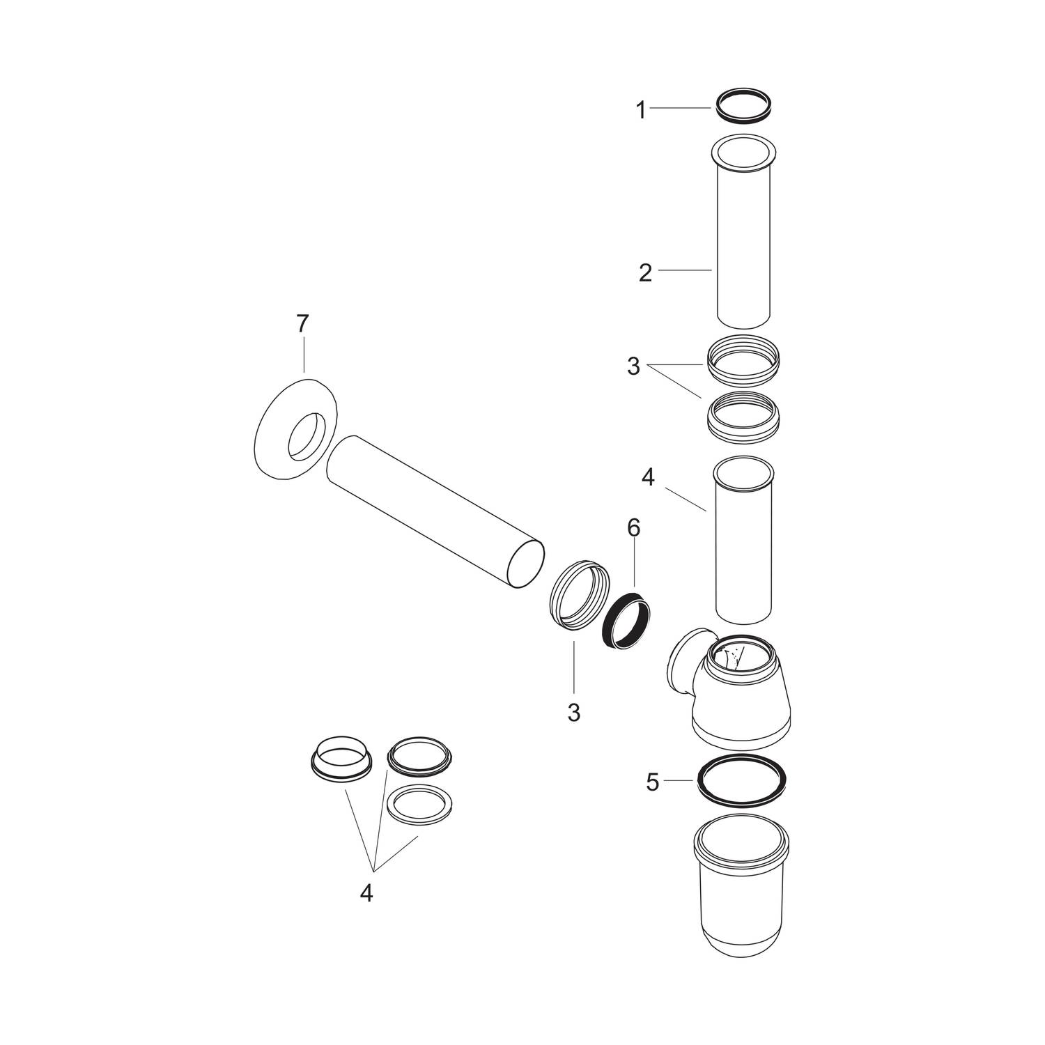 - Lieferumfang: Tauchrohr 95 mm, Wandrohr, Rosette Ø 65 mm