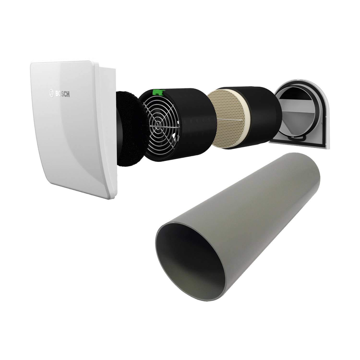 Bosch dezentrale Lüftung V2000D 43 /K Komplettset: mit Montagerohr, Außenhaube