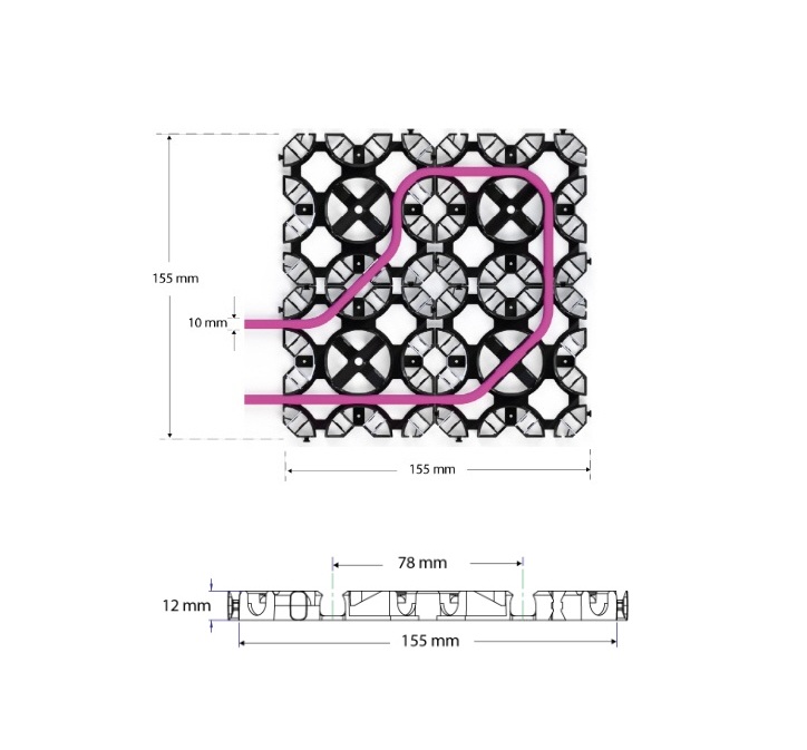 - Verlegergitter Plattenmaß: 155 x 155 mm