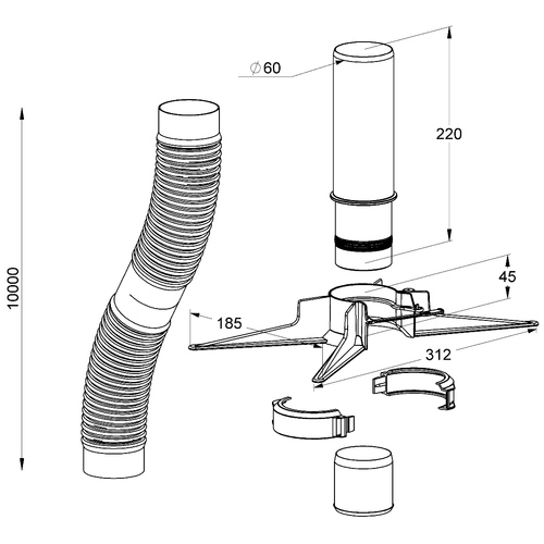 ATEC Abgas Rohr 10m flexibel DN 60 kürzbar mit Montageset Abgasrohr