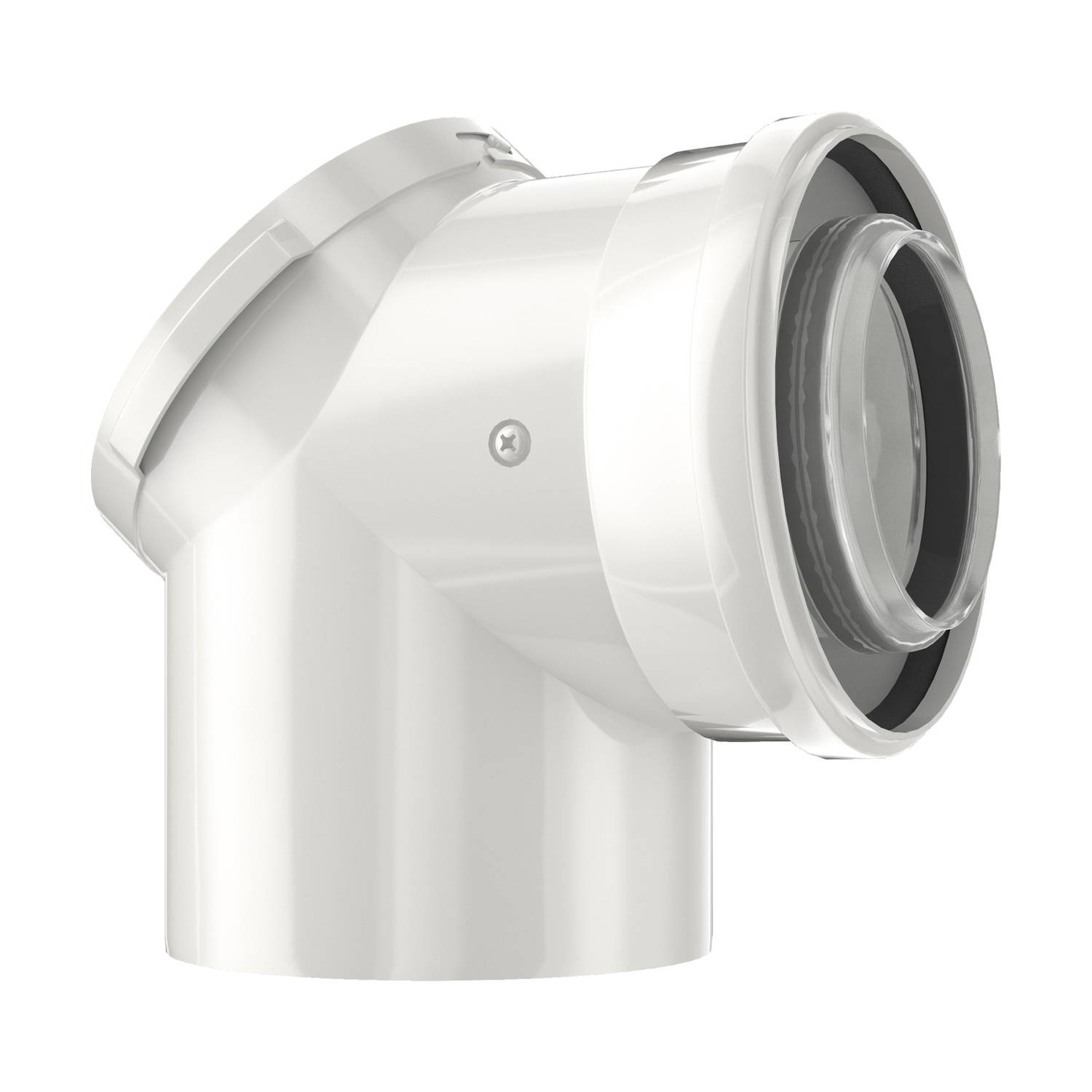- Konzentrischer Bogen 87 Grad DN80/125 mit Prüföffnung für Schornsteinfeger