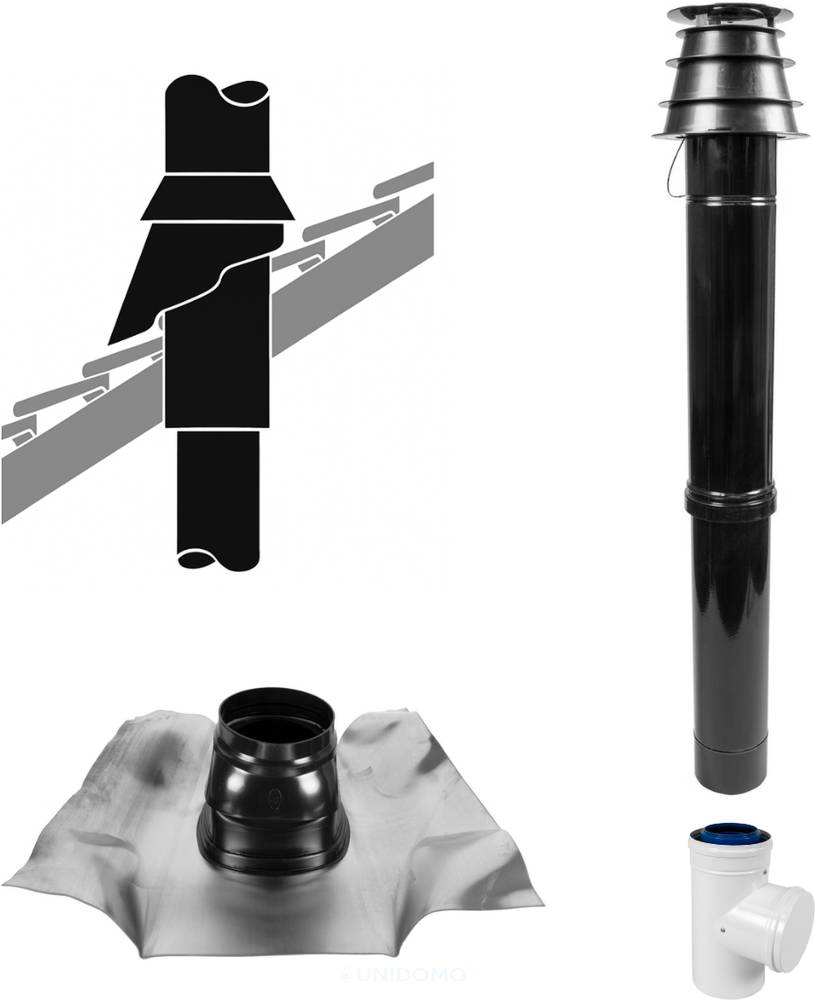 Das Skoberne Brennwert-Abgassystem über Schrägdach DN 60/100 ist ein montagefreundliches Komplettpaket für Gas- und Öl-Brennwertkessel.