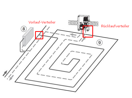 Damit die Fußbodenheizung im späteren Betrieb richtig geregelt werden kann, muss die mitgelieferte RTL-Regelbox im Rücklauf der Fußbodenheizung eingebaut sein.