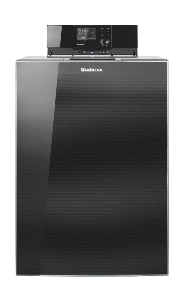 Bodenstehender Gas-Brennwertkessel Logano plus KB192i. Mit integriertem, modulierendem, leisem Gas-Vormischbrenner, für Überdruckfeuerung, Heizgas- und Wasserführung im Gegenstrom-Wärmetauscherprinzip. Kesselglieder aus Aluminium-Silizium-Guss mit glatter Oberfläche, schalloptimierte Heizgasführung, inklusive Minimal-Druckwächter nach DIN EN 12828 als Ersatz für Wassermangelsicherung. Modernes und zeitgemäßes Design