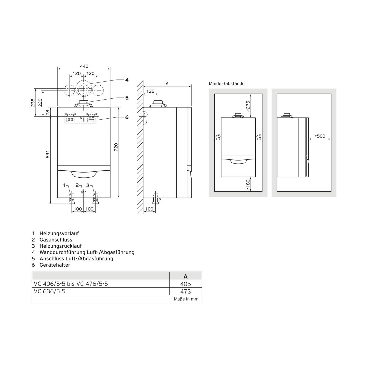- Luft-/Abgasanschluss 80/125 mm