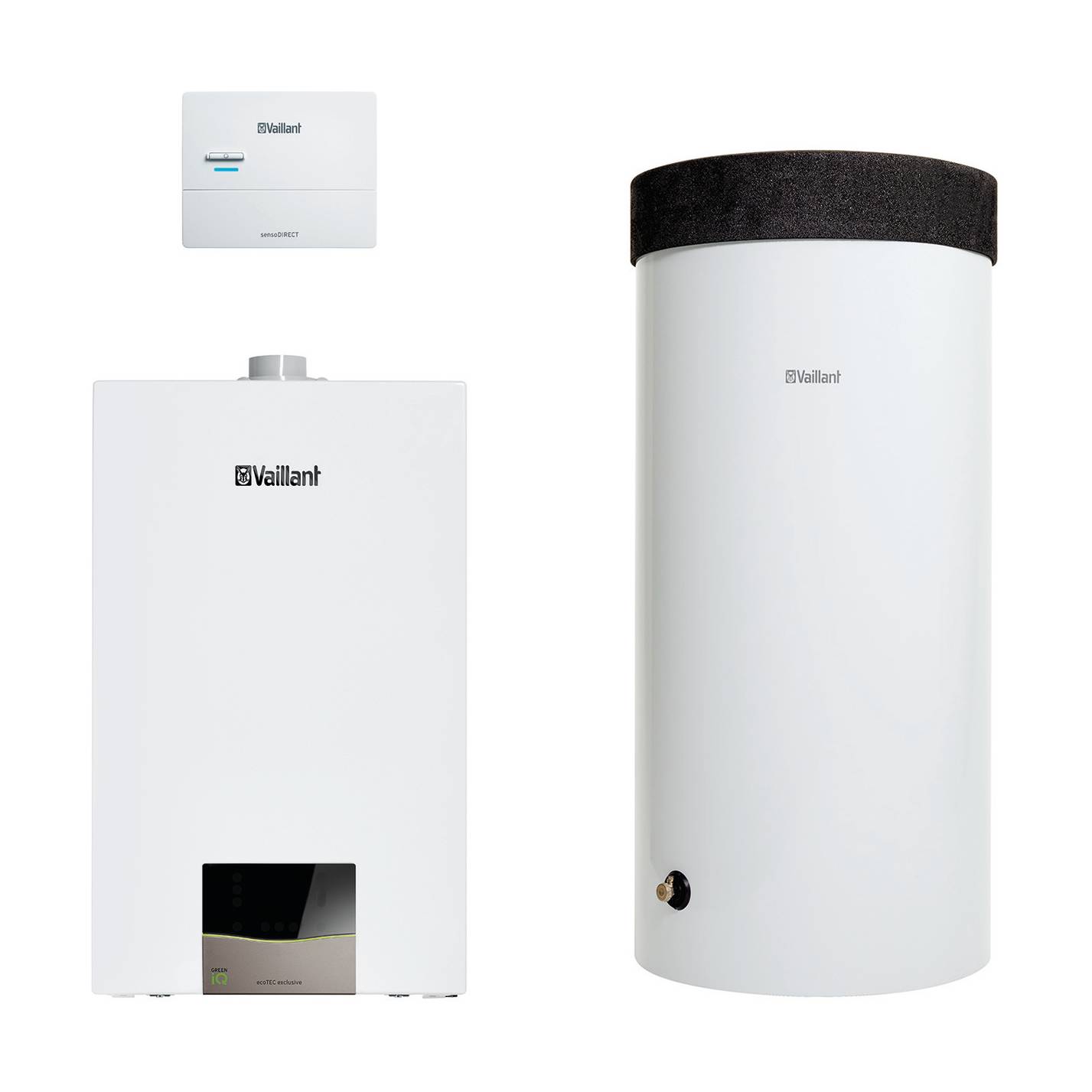 VAILLANT Paket 1.180/2 ecoTEC exclusive VC 25 CS/1-7, VRC 710,VIH R 150/6 H Produktvorteile: - Normnutzungsgrad 98 % (Hs) / 109 % (Hi) - Modulation bis zu 1:10 - Selbstadaptierende Verbrennungsregelung zum Ausgleich von Gasqualitätsschwankungen und zur vorbeugenden Geräteanalyse - Verbrennungsregelungssystem IoniDetect für alle Gasarten - Kommunikationsfähige Hocheffizienz-Pumpe ermöglicht hydraulischen Abgleich der Heizungsanlage per App - Besonders umweltfreundlich und effizient, ausgezeichnet mit Vaillant Green iQ Label - Modernes Design und hochwertiger Materialeinsatz - Integrierte Akustik Isoliermatte für einen besonders leisen Betrieb - Inklusive Gutschein für Internetmodul sensoNET zur mobilen Reglersteuerung mit sensoNET App - Display zur Einstellung und Überwachung von internen Gerätefunktionen sowie zur Bedienung des Einkreisreglers sensoDIRECT 710 Ausstattung: - Hocheffizienz-Pumpe - Wasserdrucksensor, Volumenstromsensor, Manometer, 10 Liter ADG, Sicherheitsventil, Quetschverschraubung Gasanschluss - Integral-Kondensations-Wärmetauscher aus Edelstahl - Regelung einer externen Heizkreis-/ Zirkulationspumpe und eines - Speicherladekreises integriert - Vorrang-Umschaltventil - Internetmodul sensoNET VR 921 kostenlos bestellbar - Beleuchtetes Grafikdisplay mit Touch-Bedienelementen Heizleistung bei 50/30 Grd.C Erdgas E, Erdgas LL (Min - Max) 2,8-26,4 kW Heizleistung bei 80/60 Grd.C Erdgas E, Erdgas LL (Min - Max) 2,5-24,7 kW Heizleistung bei Warmwasserbetrieb Erdgas E, Erdgas LL (Max) 27,5 kW Jahreszeitbedingte Raumheizungseffizienz ETA S 94% Speicherladeleistung max. 27,8 kW Vorlauftemperaturen max. 85 Grd.C Vor-/Rücklaufanschluss G 3/4 Gasanschluss Durchm. 20 mm Höhe/Breite/Tiefe 720 mm 440 mm 348 mm Gewicht (leer) 34 kg Wasserinhalt 2,1 l DVGW-Produkt-ID-Nr. II2N3P 1 x 0010039094 VC 25 CS/1-7 1 x 0010015929 VIH R 150/6 H 1 x 0020274790 sensoDIRECT VRC 710 Bestell.-Nr. 0010040364