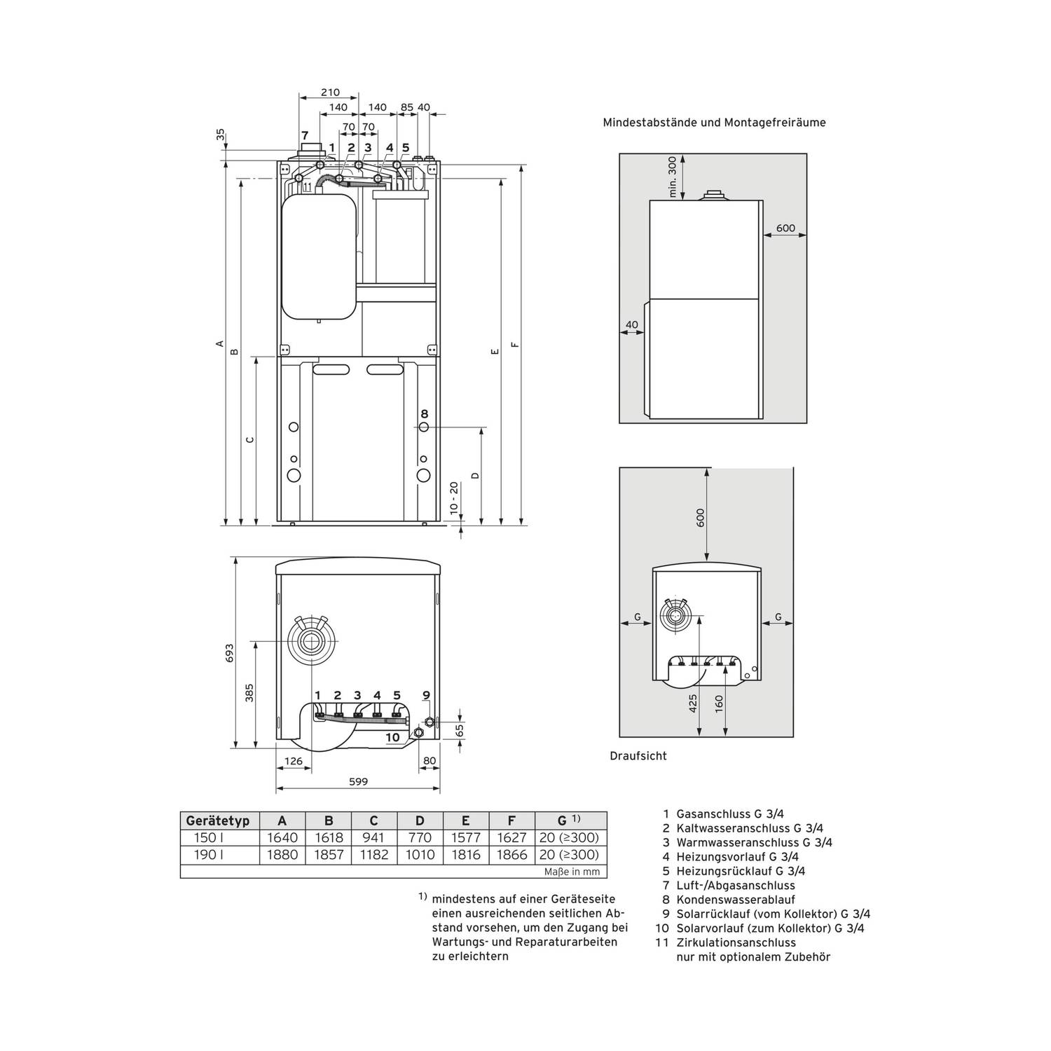 - Integrierter 190 Liter Warmwasser-Solar-Schichtladespeicher mit Solarwärmetauscher