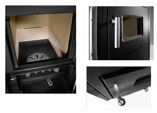 - Fülltür mit Sichtfenster, Scheibenspülluft ist im Heizeinsatz integriert