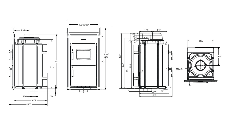 | Abstand Heizeinsatz - Heizkammerwand: | 120 mm |