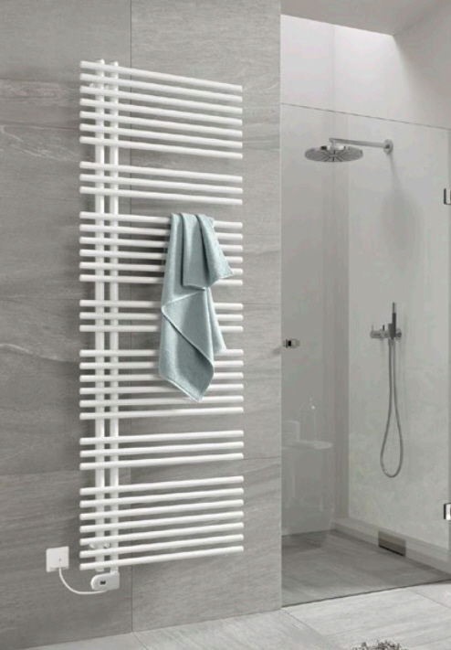 Der asymmetrische Badwärmer mit hoher Wärmeleistung und Design als Elektrokomplett-Set.