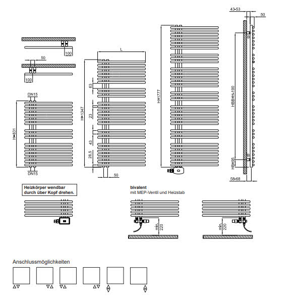 Bemm Asymo EK Elektro Komplett Badheizkörper seitlich offen rein elektrisch 400 – 1200 Watt