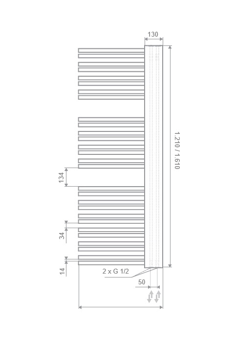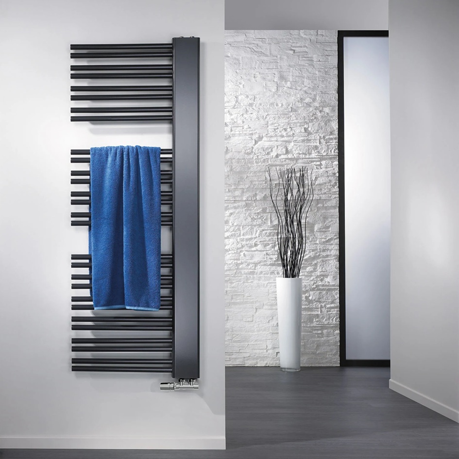 Die hochwertigen Doppelrohr-Paare des Softcube Plus erzeugen wohnliche Temperaturen und angenehm warme Handtücher. Zwei großzügige Zwischenräume bieten Platz zum Aufhängen der Frottierware. Je nach Version links oder rechts offen.