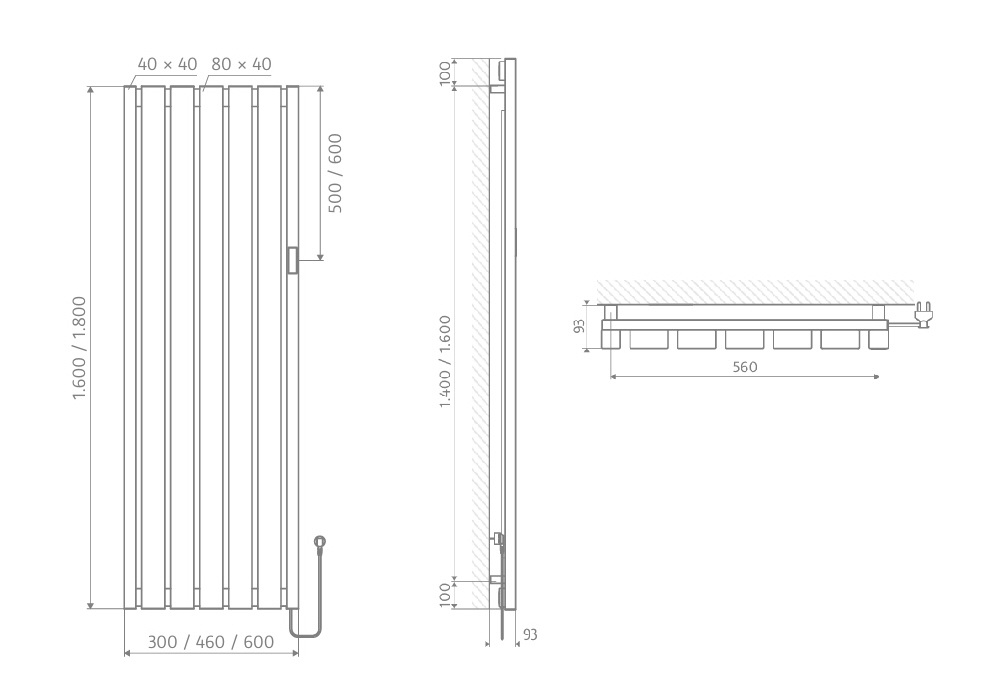 | 1800 x 300 mm | 600 Watt | 19,5 kg |
