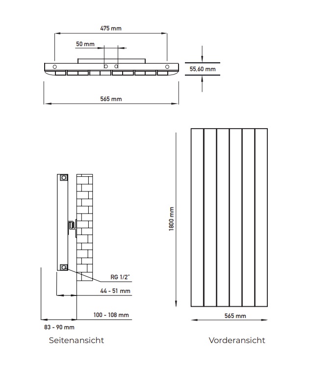 | 1800 x 565 mm | 1569 Watt | 795 Watt | 1000 Watt |
