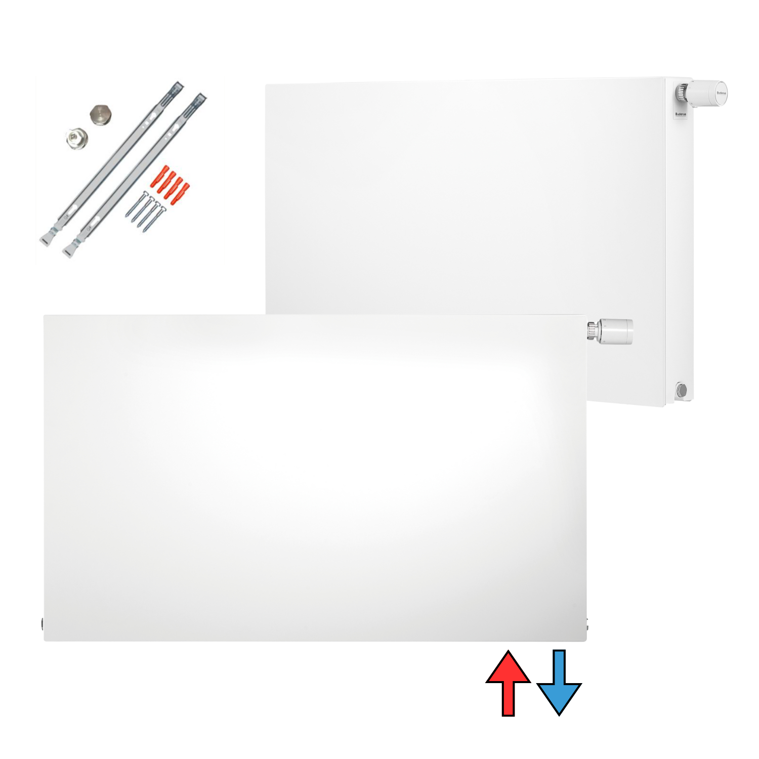- Plan-Flachheizkörper mit glatter Front und integrierter Ventilgarnitur