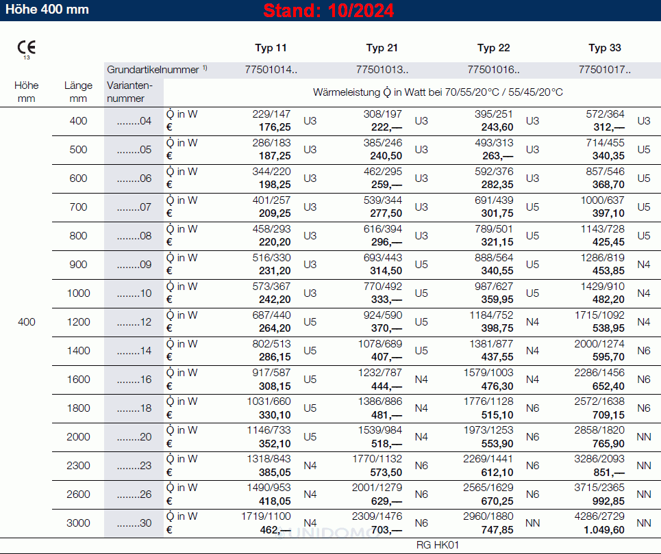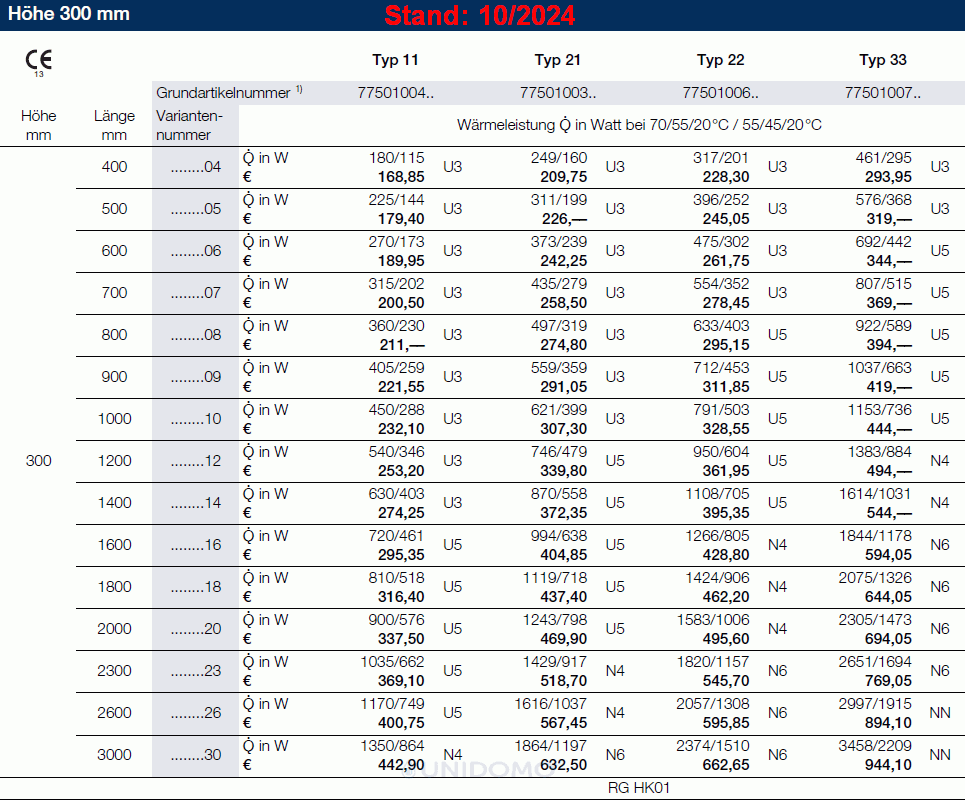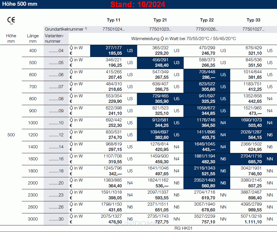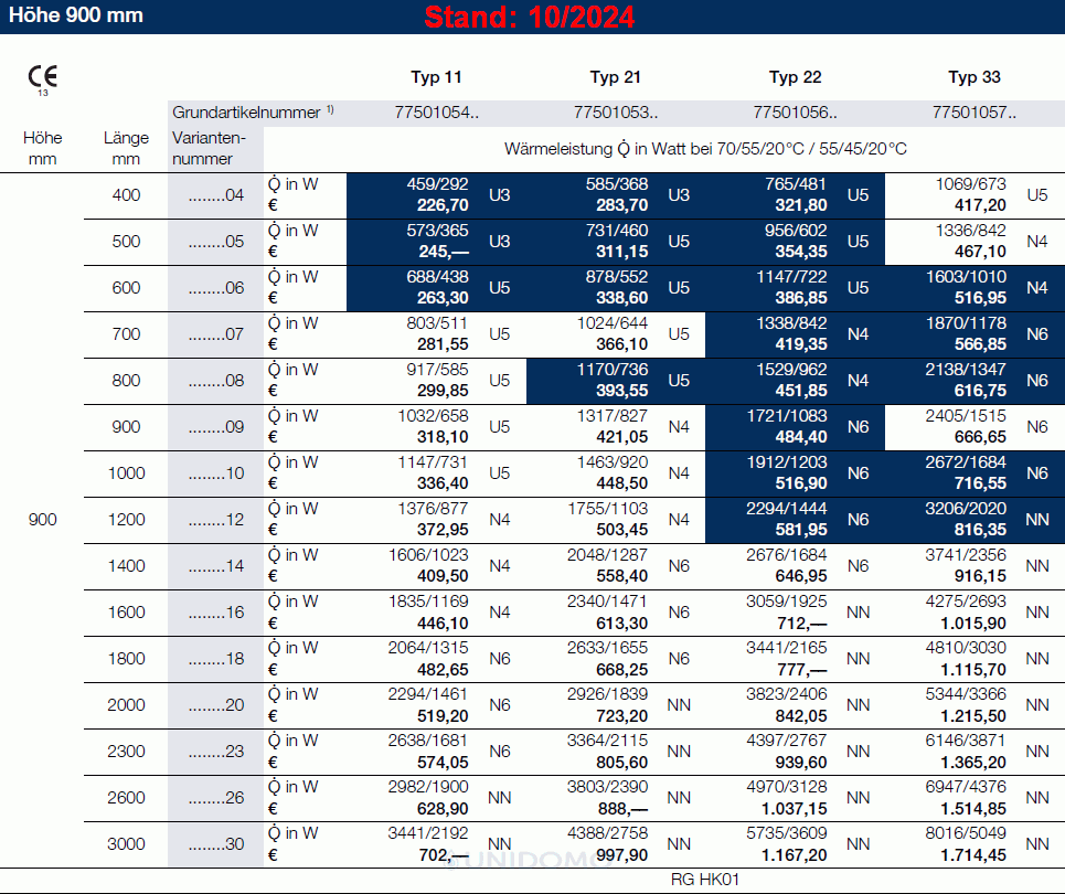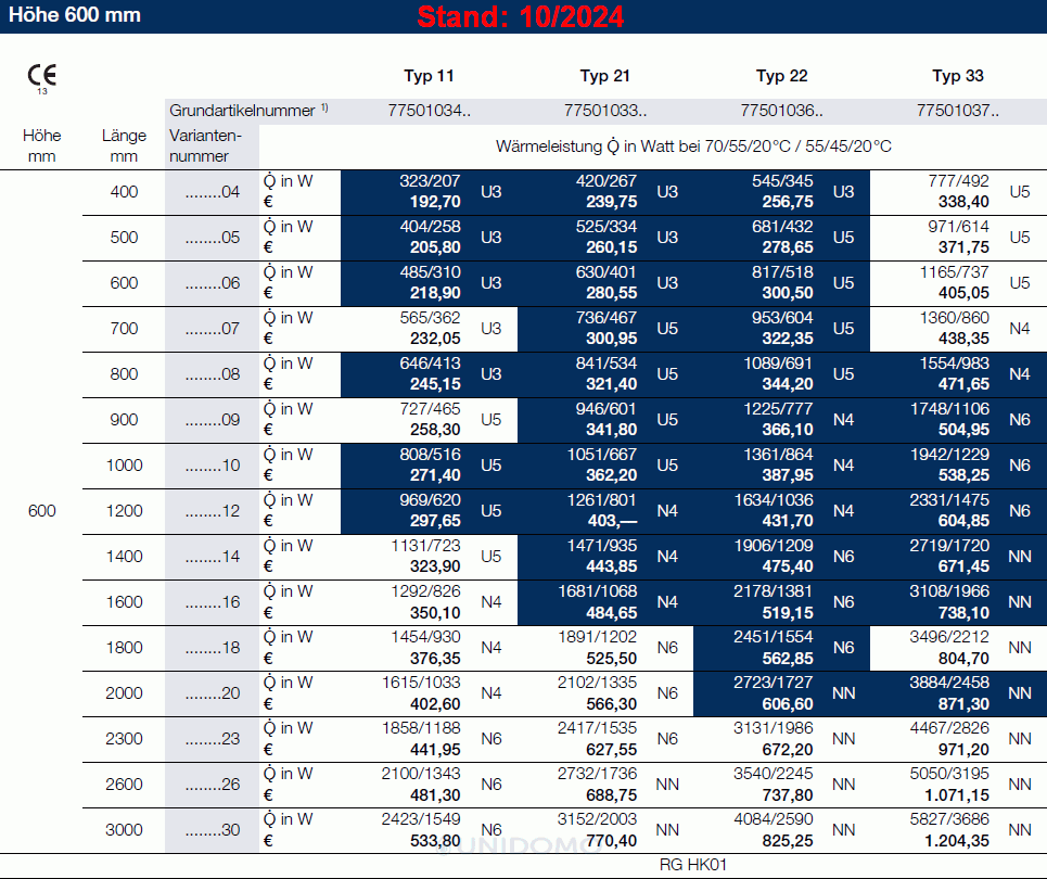 Buderus VC-Profil Ventilheizkörper Typ 11 21 22 & 33 Höhe: 300 – 900 mm Länge 400-3000 mm 2024