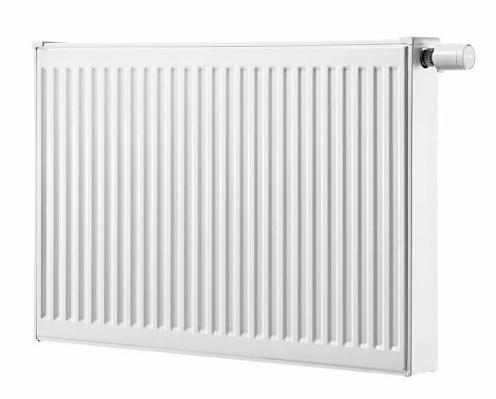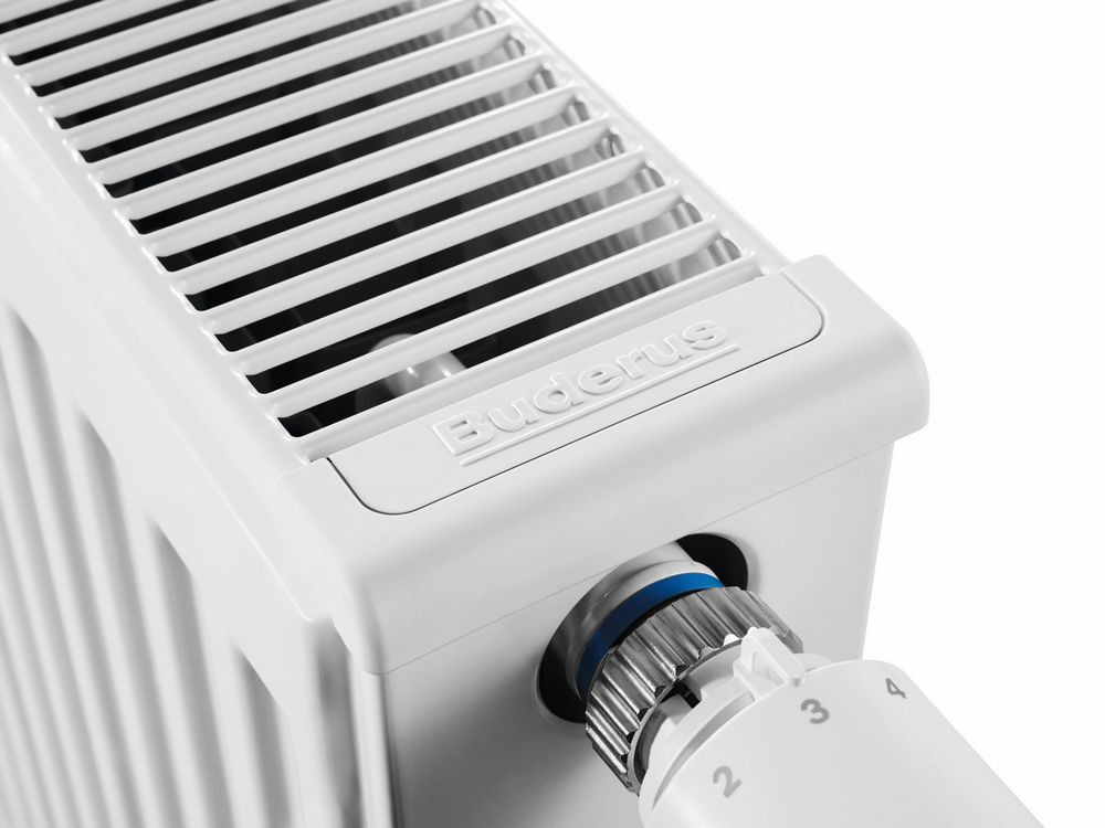 - Flachheizkörper mit profilierter Vorderfront und integriertem Einbauventil voreingestellt