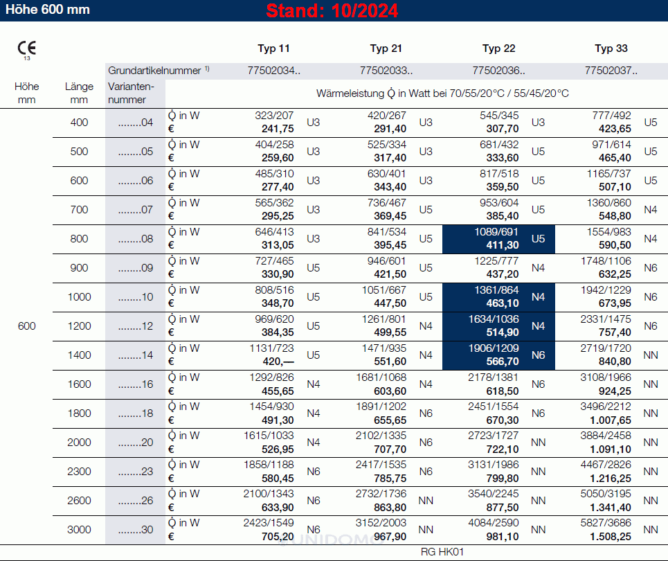 - Wärmeleistung nach DIN EN 442 geprüft und registriert
