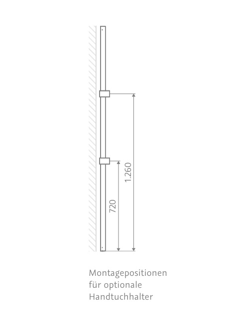Dieser besonders flache Designheizkörper schwebt nahezu auf der Wand und wirkt wie ein grafisches Gestaltungselement. Die angenehme Strahlungswärme sowie die Kombination mit bis zu zwei Handtuchhaltern, zeigen neben den optischen Vorteilen auch die Funktion. Optional wählbar ist der Handtuchhalter als umlaufend geschlossener Bügel oder als einseitig offene Variante.