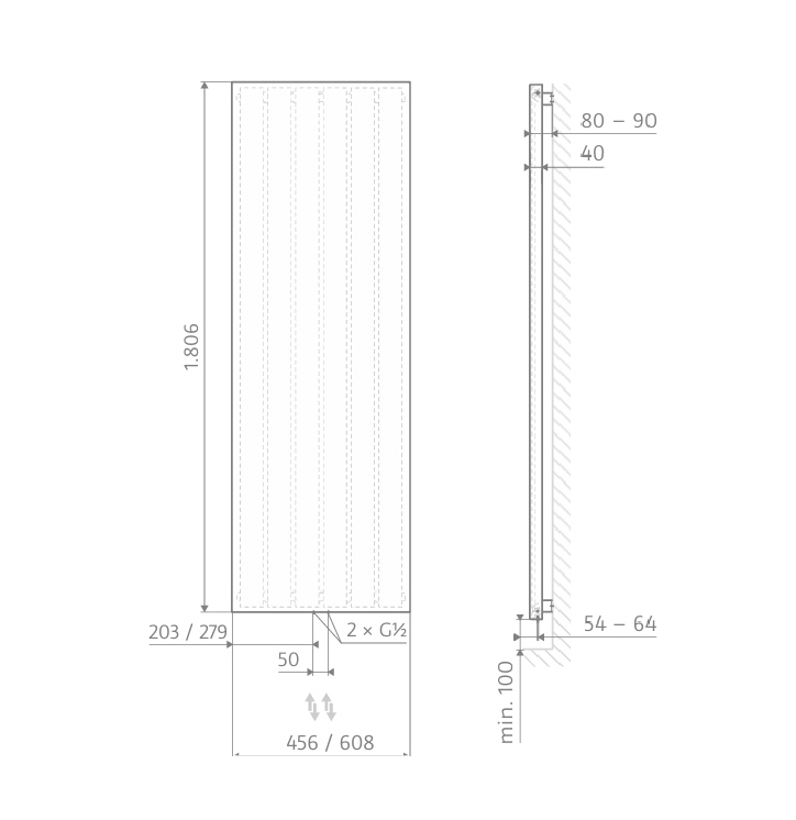 - Wand bis Vorderkante Heizkörper 80-90 mm