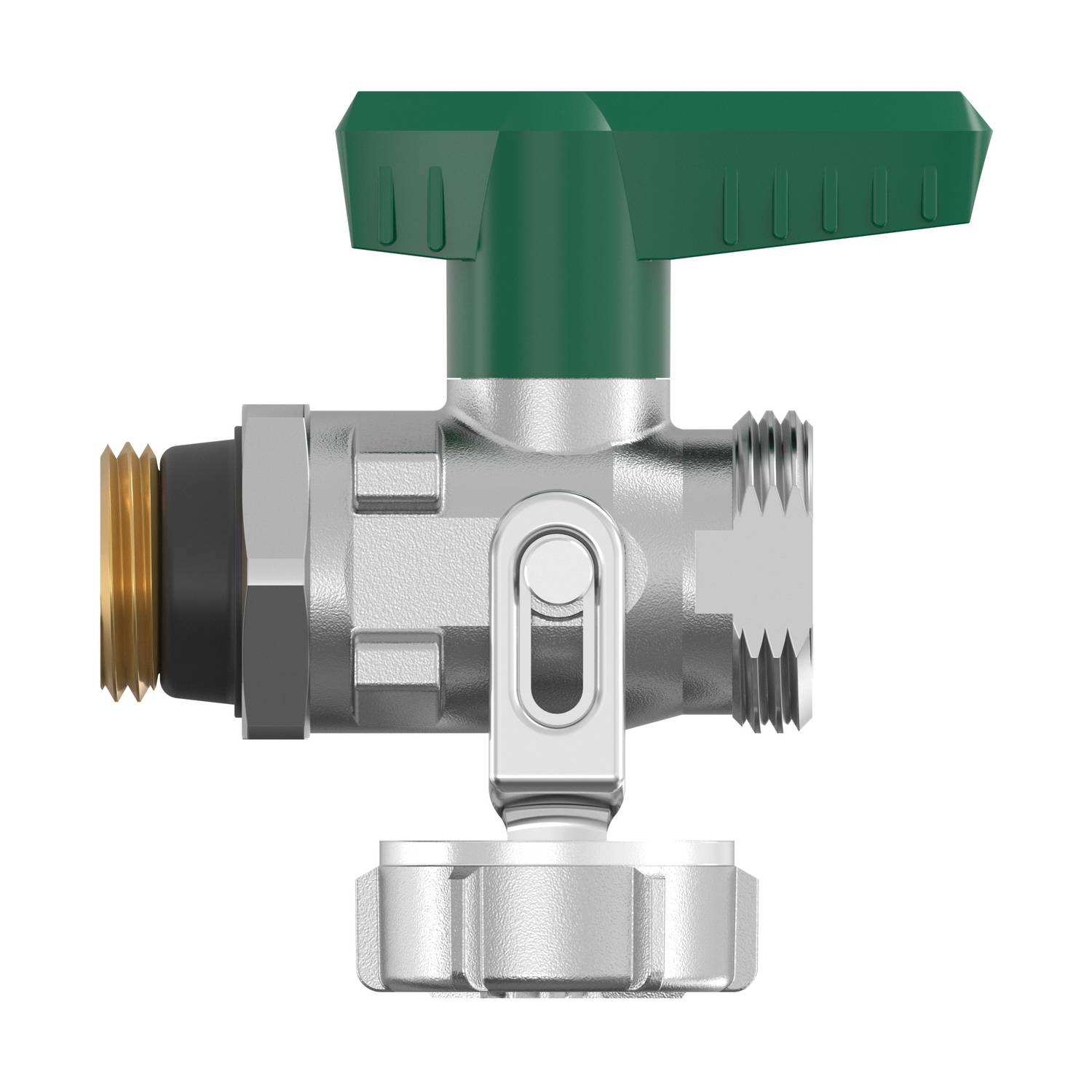 Der vernickelte Messingkörper sorgt für hohe Beständigkeit, während der ergonomische Flügelgriff eine einfache Bedienung ermöglicht. Dank selbstdichtender Gewindeeinschneiddichtung und Kontermutter ist eine sichere, positionsgenaue Montage gewährleistet. Die Blindkappe dient zugleich als verdeckte Betätigungsmöglichkeit und schützt die Armatur zuverlässig.