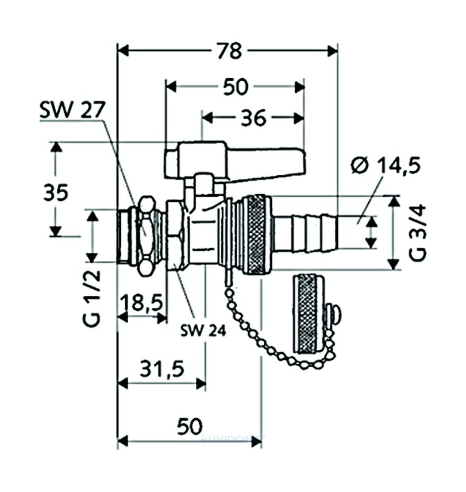• Abgang: Schlauchverschraubung Ø 14,5 mm (DN 20 G 3/4 AG)