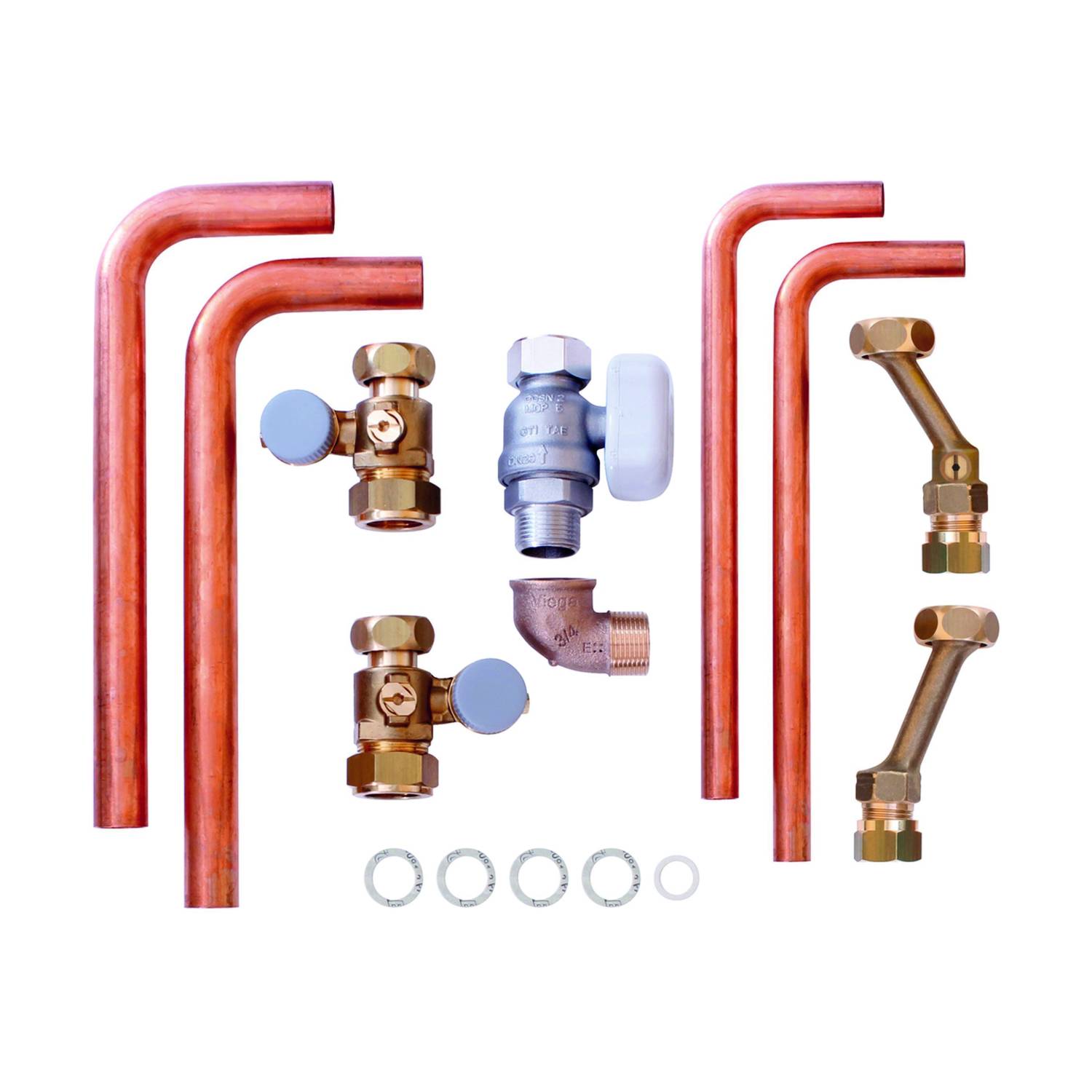 kalt- und warmwasserseitige Verrohrung (15x 1 mm) Kaltwasserabsperrung G 1/2, sowie Gashahn R 3/4 nach TRGI.