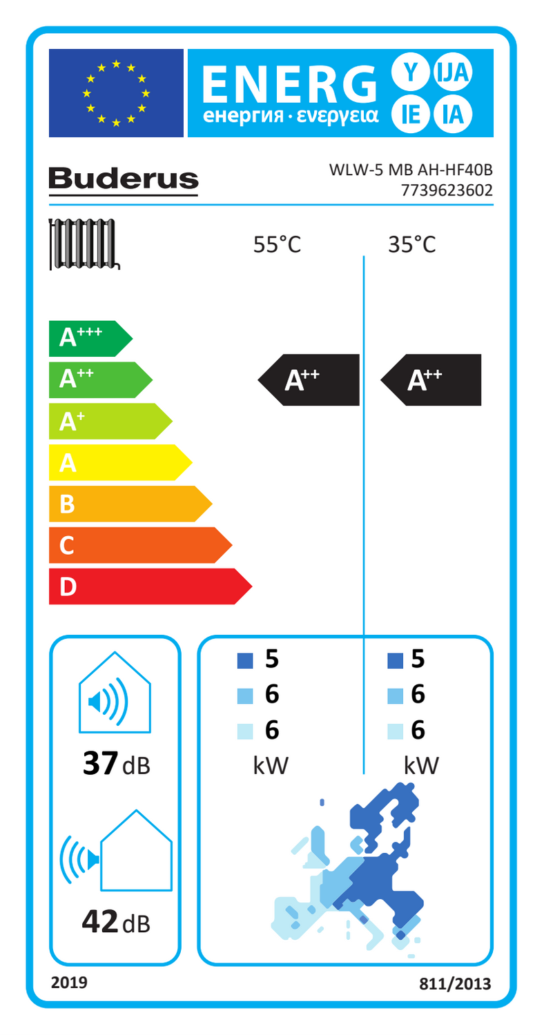 | Modulationsbereich bei A2/W35 | 1,3 - 6,4 kW |