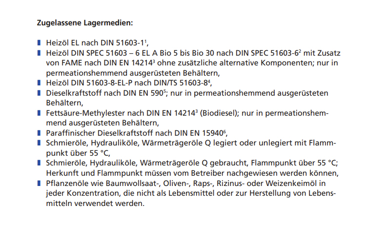 - Zugelassen zur oberirdischen Lagerung von Heizöl und Dieselkraftstoff
