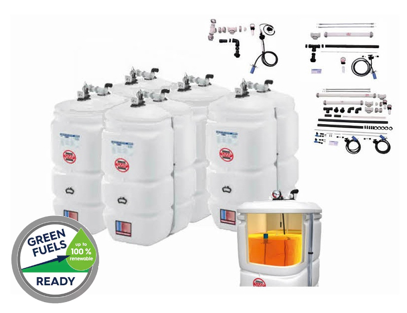- Doppelwandiges Tanksystem zur Batterie-, Block-, Winkel- und L-Aufstellung für die variable Heizöllagerung