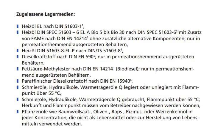 - Zugelassen zur oberirdischen Lagerung von Heizöl und Dieselkraftstoff