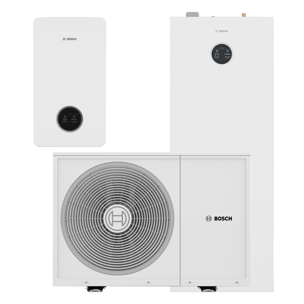 Ob Sie eine wandhängende Lösung für externe Speicher oder eine Kompaktlösung mit integriertem Warmwasserspeicher benötigen: Mit diesem Bosch Wärmepumpen Paket können Sie die Innenlösung passend zu Ihrem Projekt auswählen und erhalten ein zukunftsfähiges System für effizientes Heizen, Kühlen und die komfortable Warmwasserbereitung.