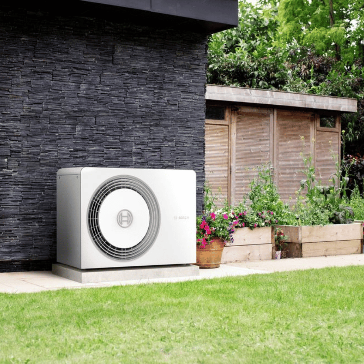 Durch die Monoblock-Ausführung befinden sich alle kältetechnischen Komponenten bereits im Außengerät. Das vereinfacht die Planung und macht die Anlage zu einer attraktiven Lösung für viele Einbausituationen. Hinzu kommt der Einsatz des natürlichen Kältemittels R290, das für moderne und zukunftsorientierte Wärmepumpensysteme besonders interessant ist. Die Kombination aus Effizienz, hoher Leistung, niedriger Geräuschentwicklung, hoher Vorlauftemperatur und Kühlfunktion macht diese Bosch Außeneinheit zu einer starken Basis für das gesamte Heizsystem.