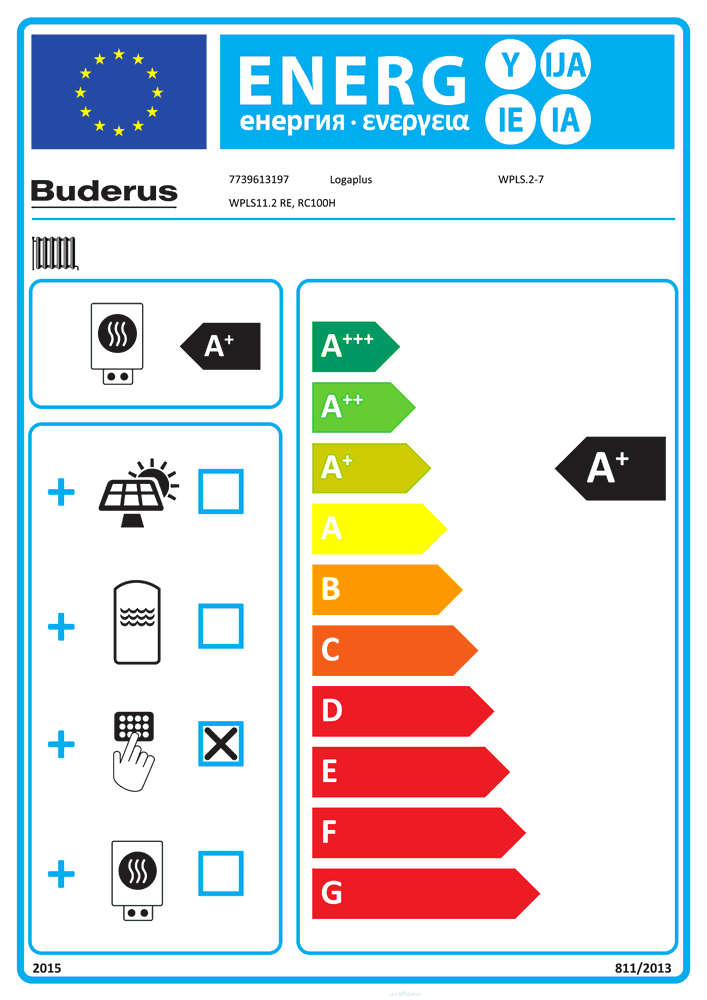 EU-Richtlinie für Energieeffizienz Klasse für jahreszeitbedingte Raumheizungs-Energieeffizienz der Verbundanlage: A+