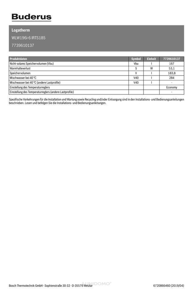 Die Erstinbetriebnahme sowie die erforderlichen wiederkehrenden Wartungen sind durch den Buderus Kundendienst oder eine von Buderus für dieses Produkt qualifizierte sowie zertifizierte Fachfirma durchzuführen!