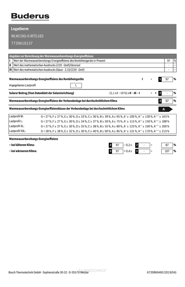Warmwasserbereitungs-Energieeffizienz bei durchschnittl. Klima: 97 %