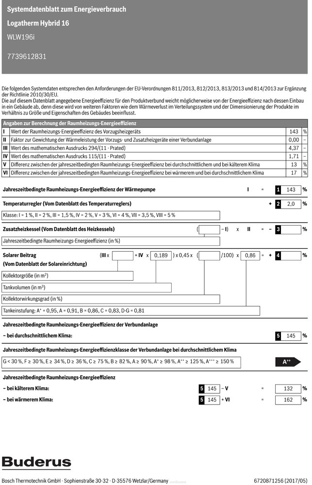 Klasse für jahreszeitbedingte Raumheizungs-Energieeffizienz der Verbundanlage: A++