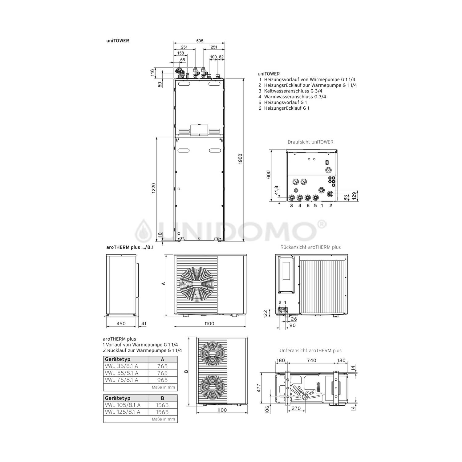 - 1 × aroTHERM plus VWL 35/8.1 A, 230 V