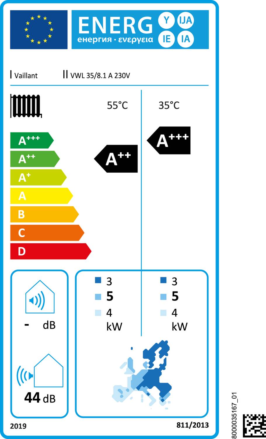 - Paket-Energieeffizienzklasse Heizung (55 °C): A++ (A+++ bis G)