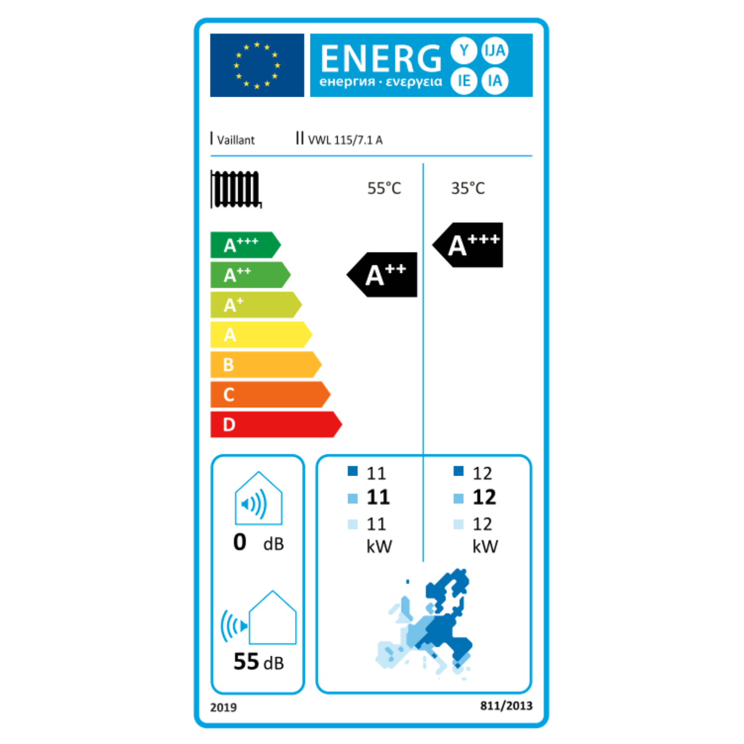 - Paket-Energieeffizienzklasse Heizung (55 °C): A+++ bis D