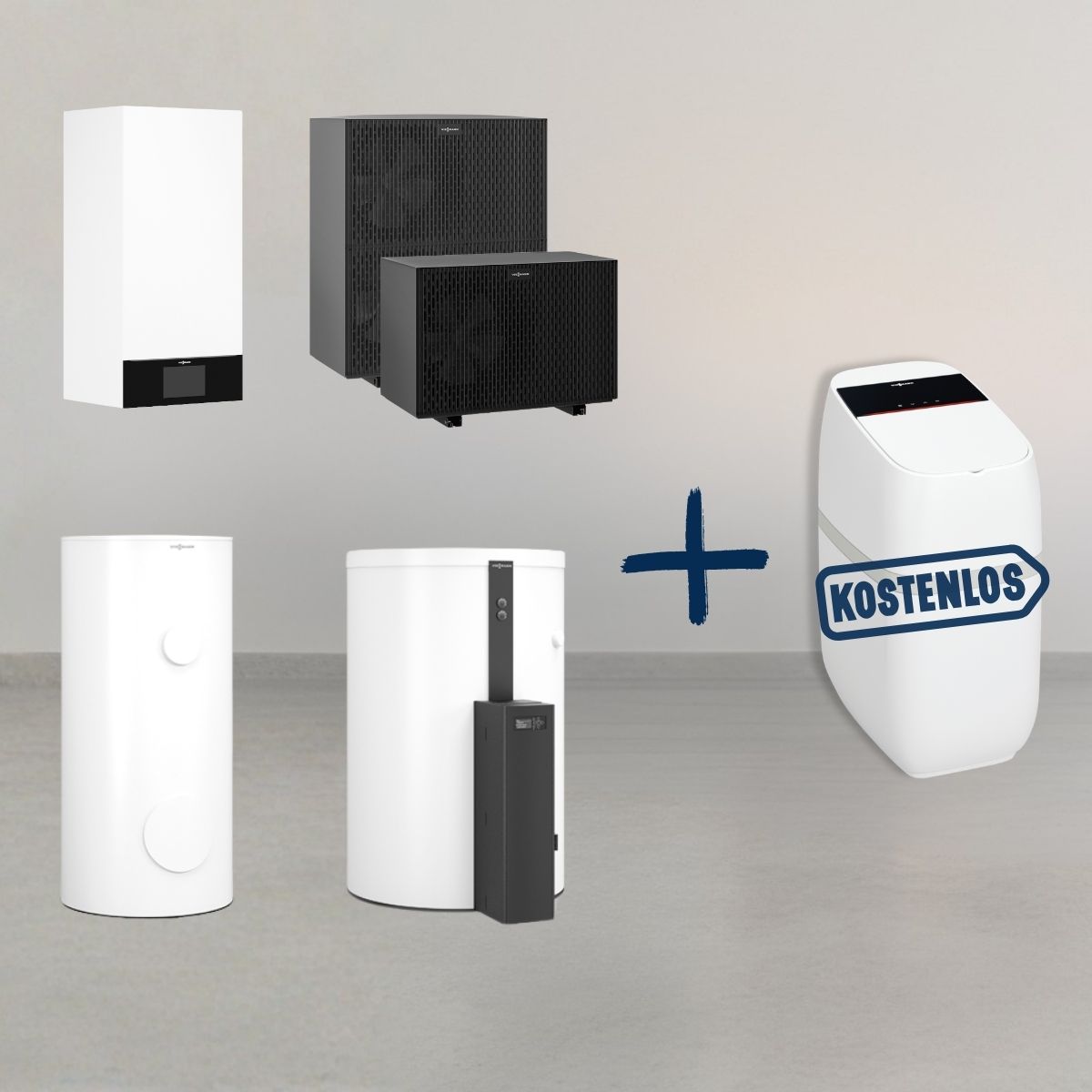 Viessmann Vitocal 250-A Modular A19 Luft/Wasser-Wärmepumpe Paket, mit Vitocell 120-E, SVW 600l inkl. Vitoset Aqua 19D Enthärtungsanlage