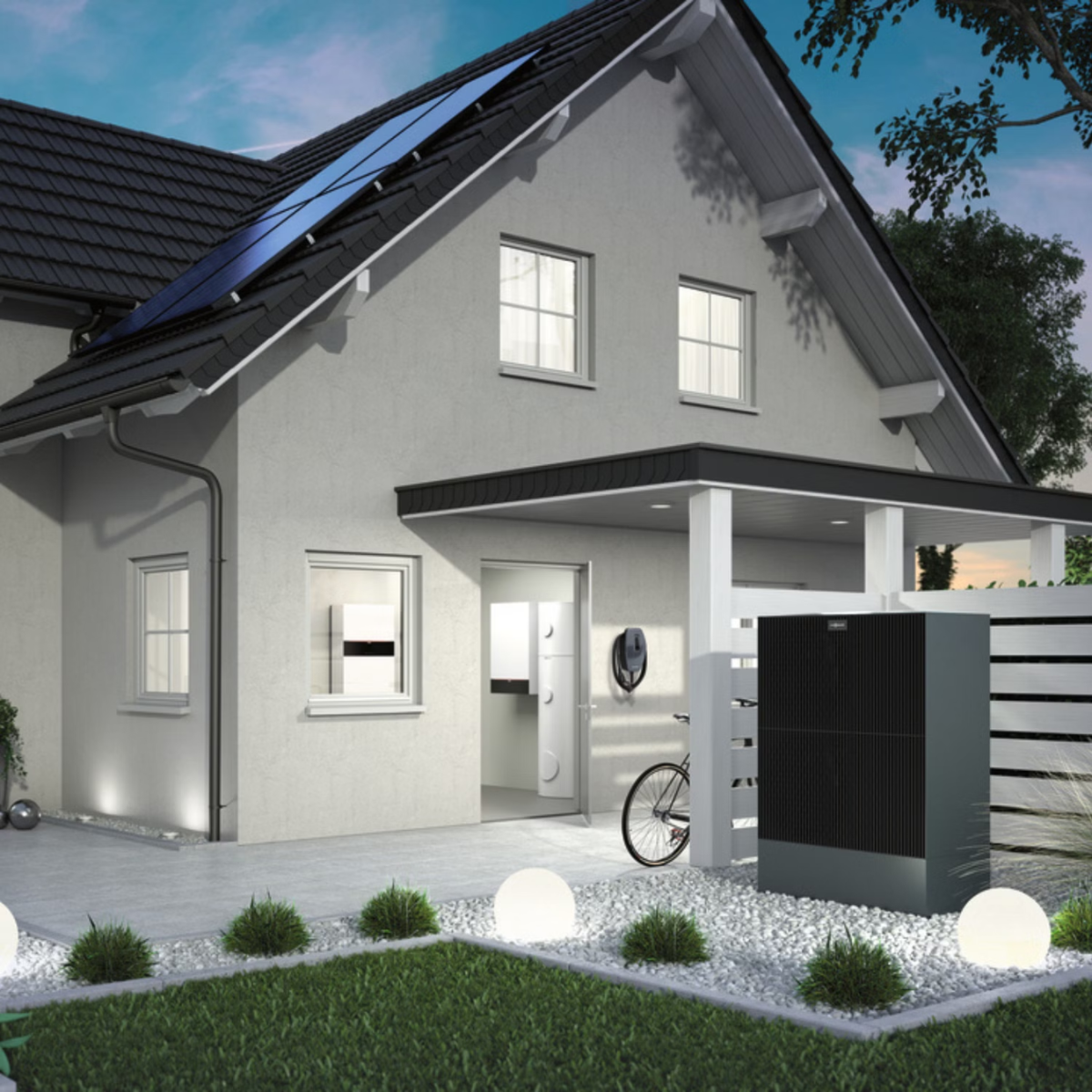 Das integrierte Viessmann Energy Management ermöglicht den ausgleichenden Betrieb von Komponenten im Haus, die Strom erzeugen, verbrauchen oder speichern. Im Fokus steht die Eigenverbrauchsoptimierung von selbst erzeugtem PV-Strom. Die Wärmepumpe kann dabei zur Steuerzentrale der Energieflüsse im Haus werden – etwa in Verbindung mit Photovoltaik, Stromspeicher, Wallbox und weiteren kompatiblen Zubehören.