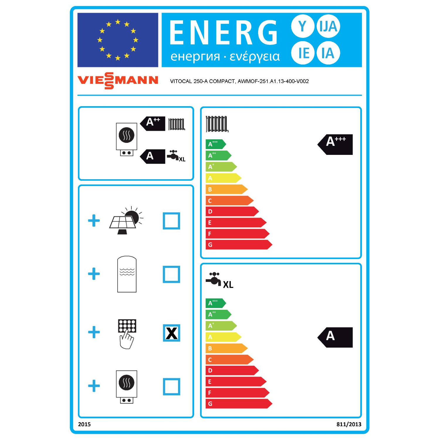 - Raumheizungs-Energieeffizienzklasse Mitteltemperatur, durchschnittliches Klima: A+++