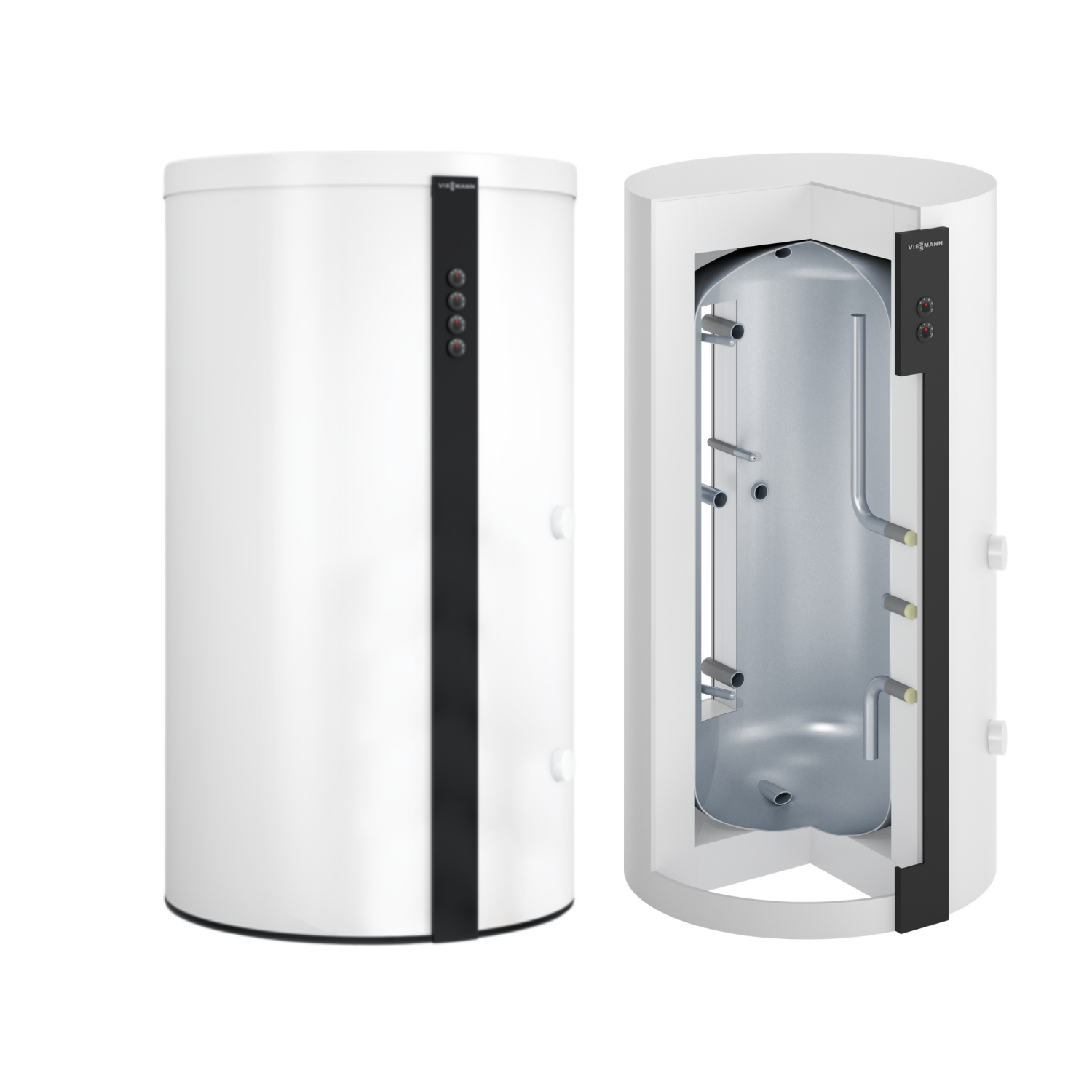 - Komplettpaket: Wärmepumpe + Vitocell 100-V CVWC 300 l + Vitocell 100-E SVPB 400 l + Montage- & Systemkomponenten