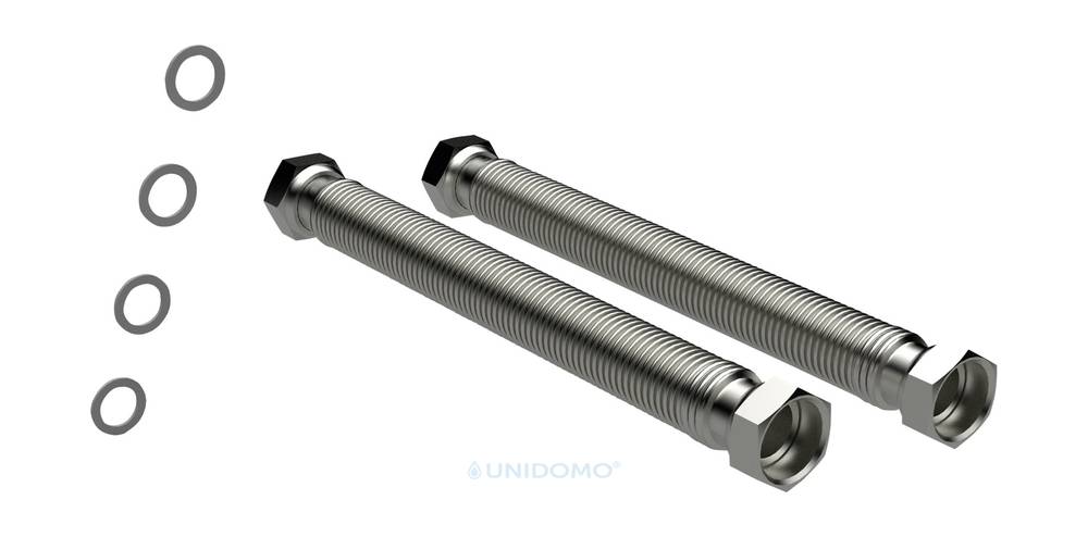 Mit seinem kompakten Ausführungsbereich eignet sich das Set ideal für Installationen mit geringem Wandabstand und ermöglicht eine saubere sowie platzsparende Anbindung der Wärmepumpe.